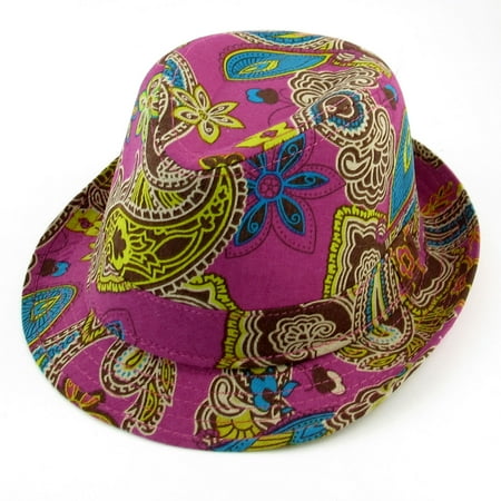 Boy Girls Kid Summer Travel Beach Paisley Print Fuchisa Fedora Trilby Hat