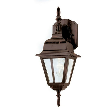 BelAire Down Candle Outdoor Carriage Lamp, Rust: Colonial style Imperial roof with finial tipDecorative wall plate with beveled edgesMade of weather-resistant cast aluminum constructionBeveled glass shadeUses 1 bulbUL listedCarriage light fixture suitable for wet locations