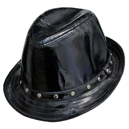 Sexy Patent Leather stingy Brim FedoraSilver Tone Studded BandPerfect for Him &