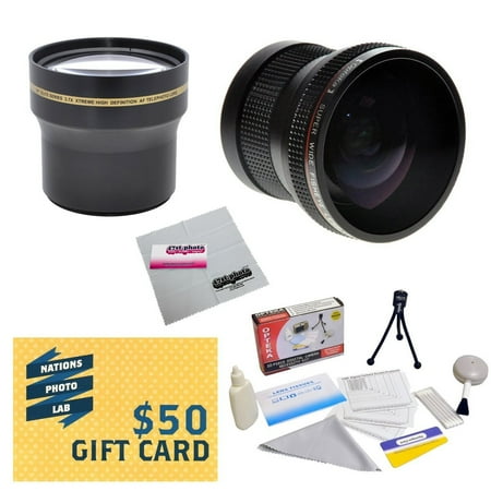Professional 3.7X Telephoto & 0.20X Fisheye Lens Package For Nikon D90 D60 D80 D40 D40X D7000 D3200 D700 D800 D90 Includes Deluxe Cleaning Kit + Mini Tripod + $50 Photo Print Gift Card!